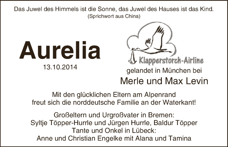 Hier finden Sie alle Familienanzeigen aus der Zeitung, die bisher für Aurelia Levin erschienen sind. Weitere Familienanzeigen, die in der Zeitung erscheinen, werden hier ebenfalls aufgelistet