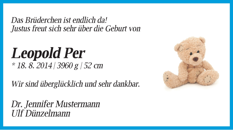 Hier finden Sie alle Familienanzeigen aus der Zeitung, die bisher für Leopold Per erschienen sind. Weitere Familienanzeigen, die in der Zeitung erscheinen, werden hier ebenfalls aufgelistet