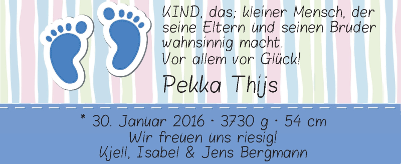 Hier finden Sie alle Familienanzeigen aus der Zeitung, die bisher für Pekka Thijs Bergmann erschienen sind. Weitere Familienanzeigen, die in der Zeitung erscheinen, werden hier ebenfalls aufgelistet