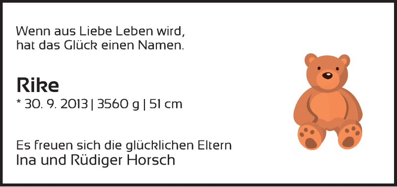 Hier finden Sie alle Familienanzeigen aus der Zeitung, die bisher für Rike erschienen sind. Weitere Familienanzeigen, die in der Zeitung erscheinen, werden hier ebenfalls aufgelistet