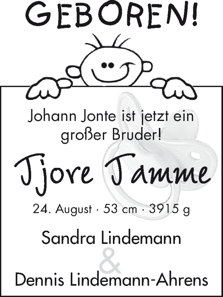Hier finden Sie alle Familienanzeigen aus der Zeitung, die bisher für Tjore Tamme Lindemann erschienen sind. Weitere Familienanzeigen, die in der Zeitung erscheinen, werden hier ebenfalls aufgelistet